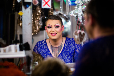 Am 9. Juni fand dieses Treffen nun tatsächlich statt. Dafür reiste Dennis Annawald nach Hamburg, gemeinsam mit Praxisanleiterin Tanja Teker, Susanne Becker und dem Fotografen der Toleranz-Kampagne, Steffen Forster. Das Ziel war „Olivias Show Club“, ein von Olivia Jones betriebener Club auf der Großen Freiheit. Der Zeitplan war straff: Annawald wurde dort zur Frau gestylt, direkt in der Garderobe der bekannten Travestiekünstlerin. Es folgten ein Fotoshooting im Club und anschließend eine geführte Kiez-Tour über die Reeperbahn.