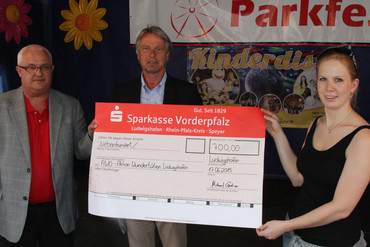 Stadtkreisverband Ludwigshafen am Rhein der AWO kooperierenden Schulen Sachspenden für benachteiligte Kinder zur Verfügung stellt. Auf Vorschlag und in Absprache mit den Lehrkräften werden dabei auf unbürokratischem Wege unterschiedlichste Mittel zur Unterstützung bedürftiger Kinder angeschafft, die den konkreten Bedarfsfall abdecken. Den symbolischen Scheck überreichte Michael Cordier, Geschäftsführer des Marketing-Verein Ludwigshafen an Holger Scharff, Vorsitzender der AWO Ludwigshafen auf der Festbühne des Parkfestes.