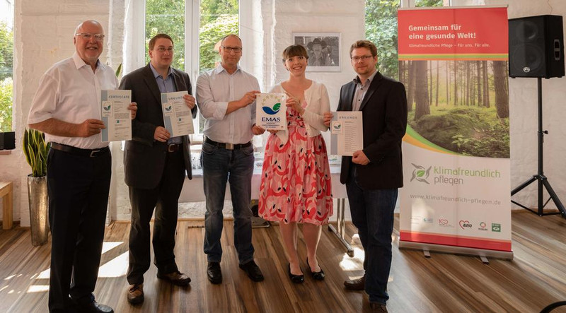 Der AWO Bezirksverband Pfalz erhält ein Zertifikat für die erfolgreiche Einführung eines Umweltmanagementsystems nach europäischem EMAS Standard. „Mit der Einführung von EMAS haben wir die notwendigen Prozesse und Strukturen geschaffen, um Fragen zum Umwelt-und Klimaschutz in unseren Häusern künftig systematisch angehen zu können." erklärt Susanne Becker, stellvertretende Geschäftsführerin des Bezirksverbandsund ergänzt: „Der Aufbau des Systems war für uns ein wichtiger Entwicklungsschritt, um uns als Verband auf künftige Herausforderungen vorzubereiten."Insgesamt umfasst die Zertifizierung in der Pfalz sieben Seniorenzentren und sechs Sozialstationen.