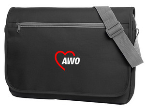 AWO Notebook-Tasche aus Polyester 600 x 300d, Maße: ca. 41 x 30 x 6 cm, gepolstertes Hauptfach, 2 gepolsterte Einsteckfächer innen, z.B. geeignet für Tablet, flaches Einsteckfach geeignet für DIN A4-Unterlagen unterhalb des Überschlags, Vortasche mit Stiftschlaufen, Überschlag mit Klettverschluss und Reißverschluss-Vortasche, rückseitige Befestigungsschlaufe für Trolley-Gestänge, längenverstellbarer Schultergurt mit Rutschsicherung, inkl. Stickerei, 1 Stück