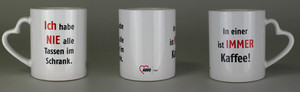 Spruch „Ich habe nie alle Tassen im Schrank. In einer ist immer Kaffee!“